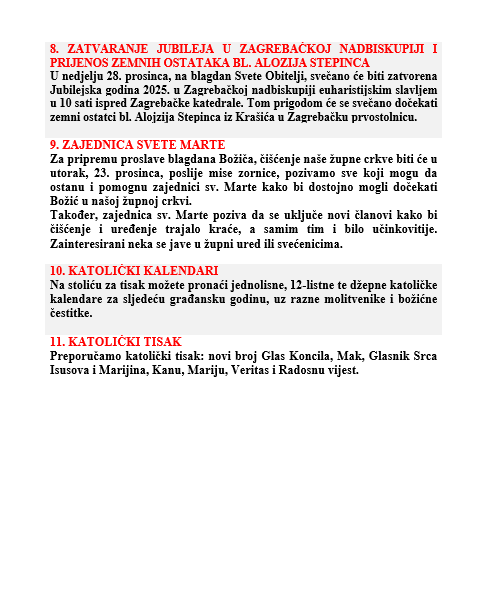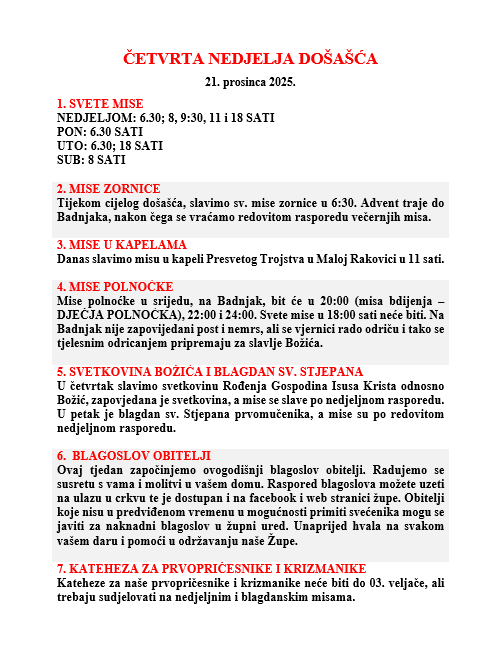 ČETVRTA NEDJELJA DOŠAŠĆA, 21. prosinac 2025