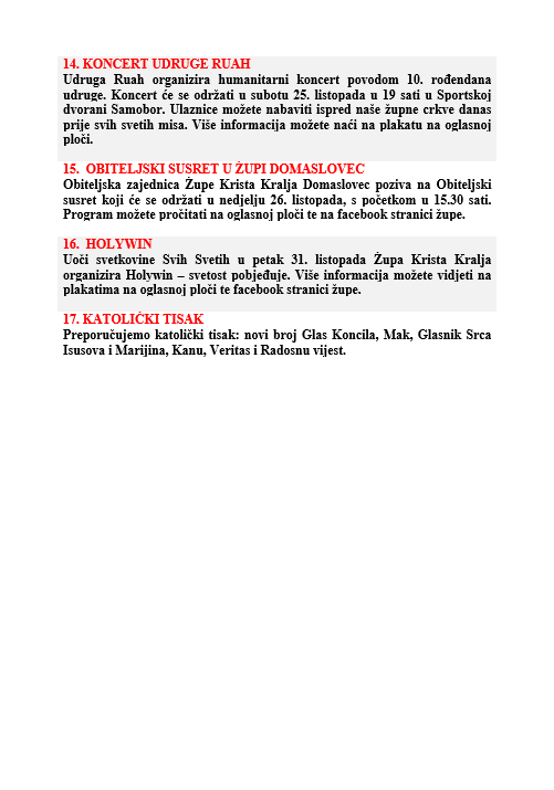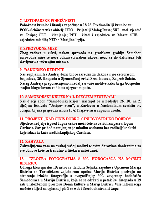 DVADESET I DEVETA NEDJELJA KROZ GODINU, 19. listopada 2025