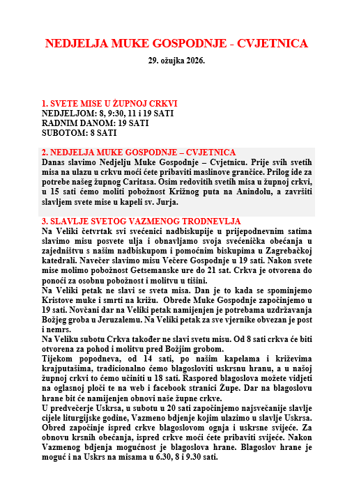 NEDJELJA MUKE GOSPODNJE, CVJETNICA 29. ožujka 2026