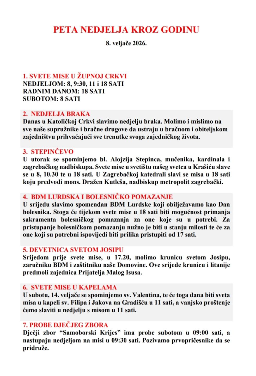 PETA NEDJELJA KROZ GODINU, 8. veljače 2026.